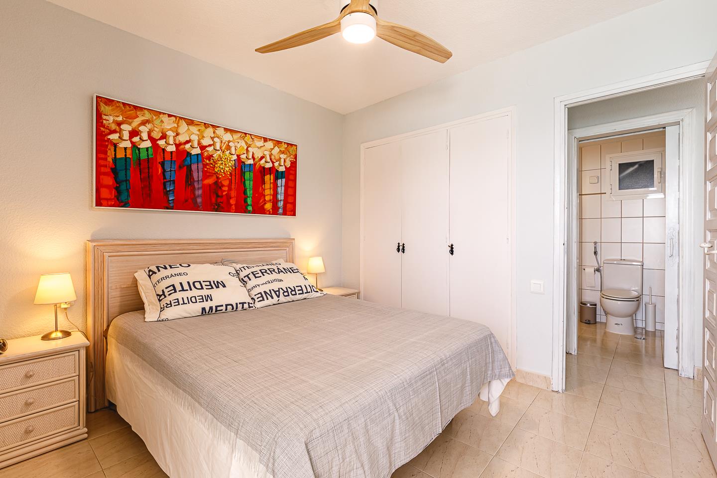De woning heeft 1 slaapkamer en 1 badkamer. De accommodatie biedt privacy, een gemeenschappelijke tuin met gazon en bomen en mooi uitzicht op de baai, het strand, de zee en andere gebouwen. Het comfort en de nabijheid van het strand, gelegenheden om te winkelen, mogelijkheden om te sporten, amusement en uitgaansgelegenheden maken dit een geschikt appartement voor uw vakantie in Spanje met familie of vrienden.