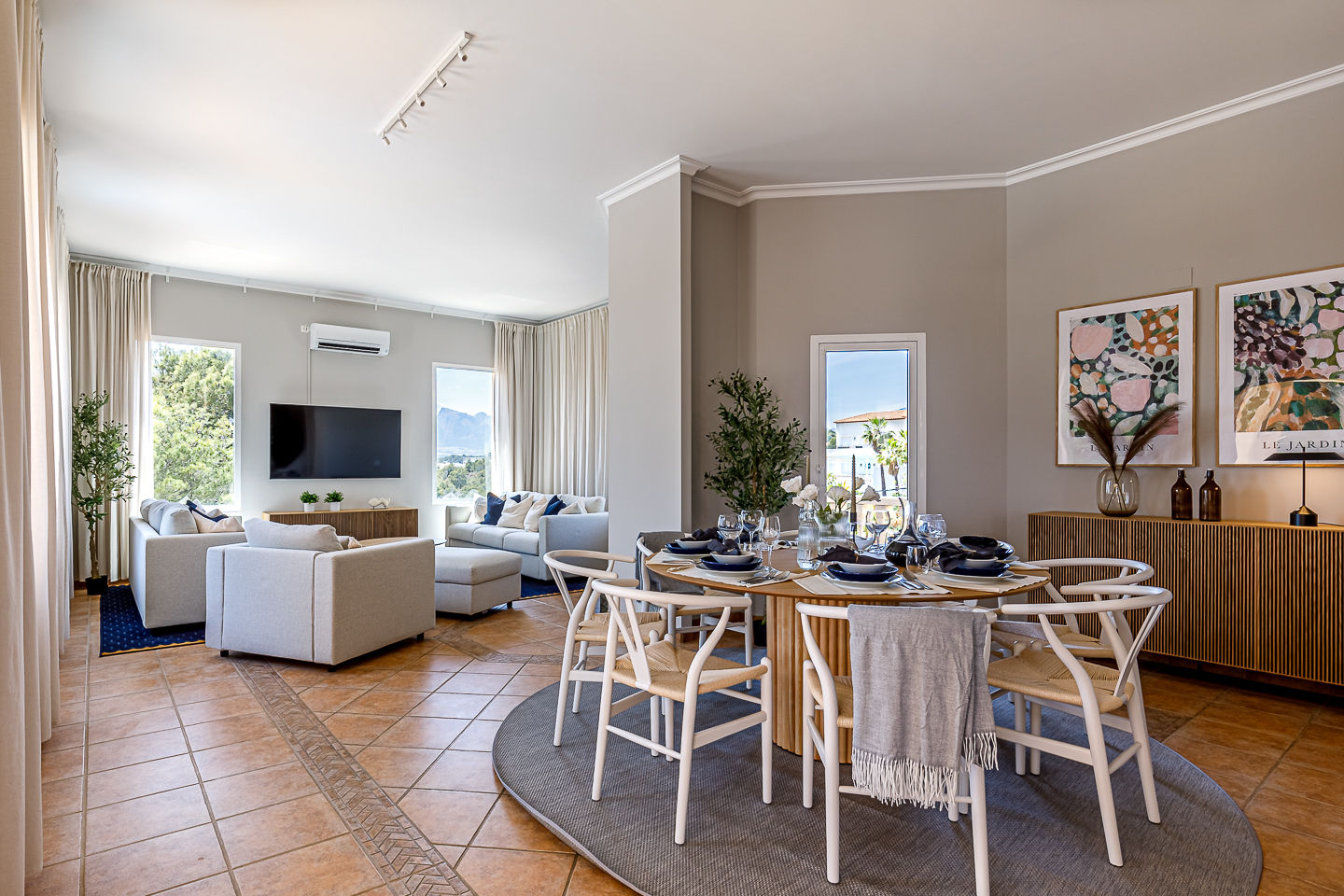 • woon/eetkamer met airconditioning, televisie en hifi