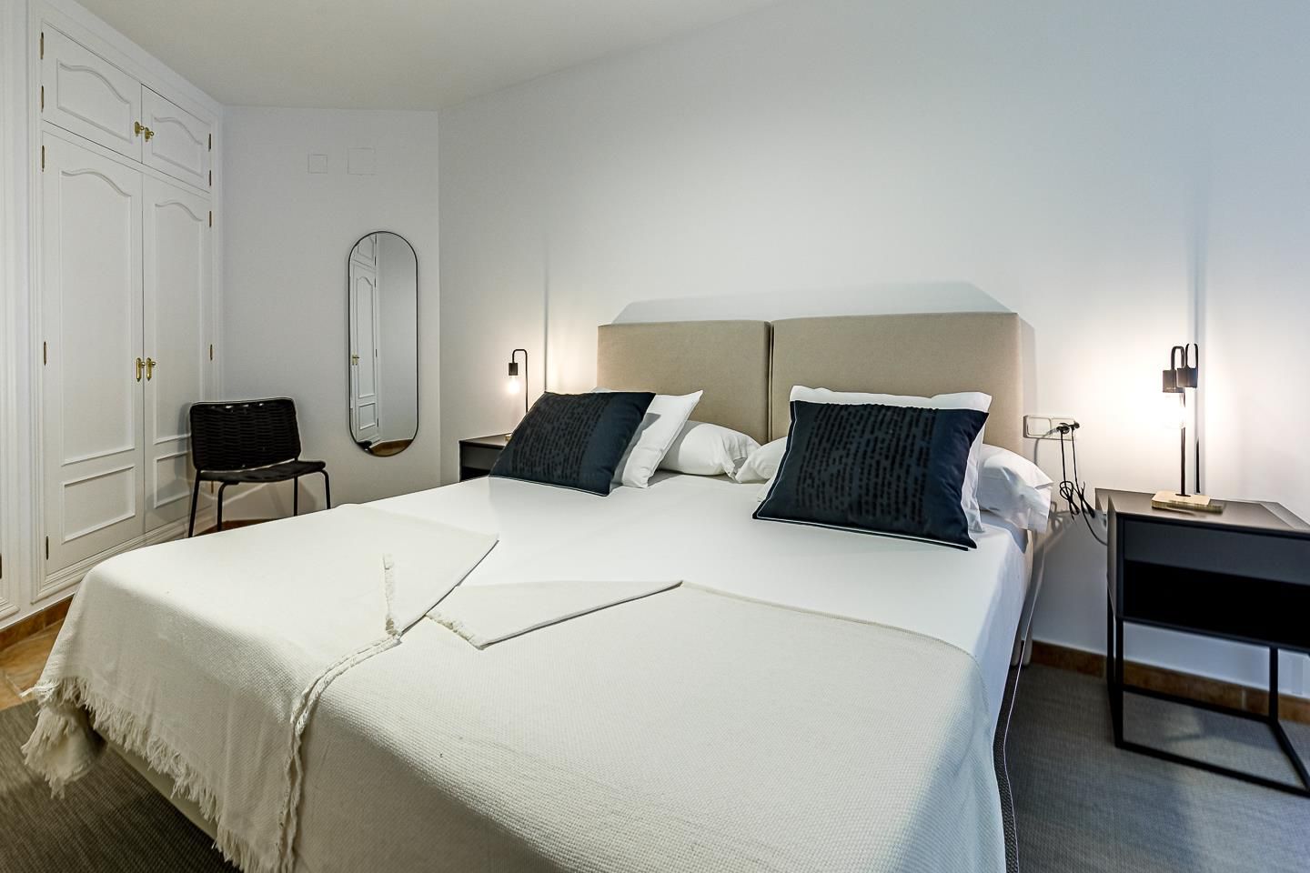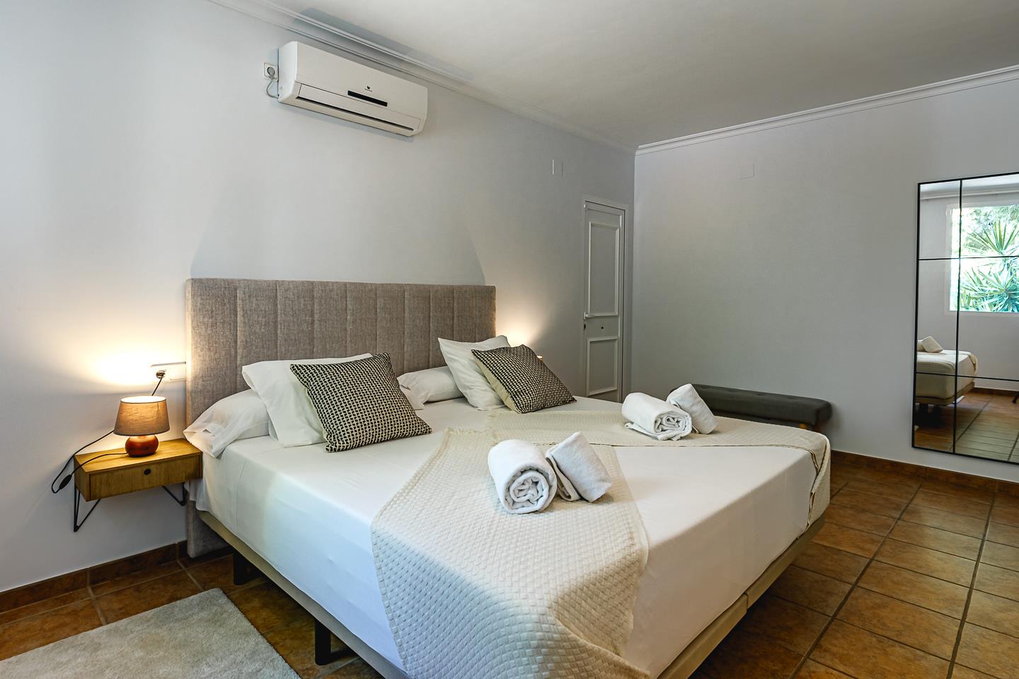 • 2 slaapkamers met airconditioning, elk met een kingsize bed (200 bij 200 cm) en een eigen badkamer