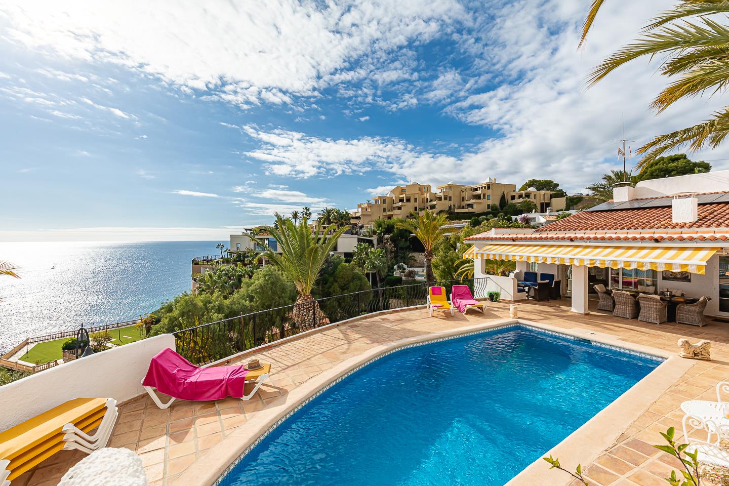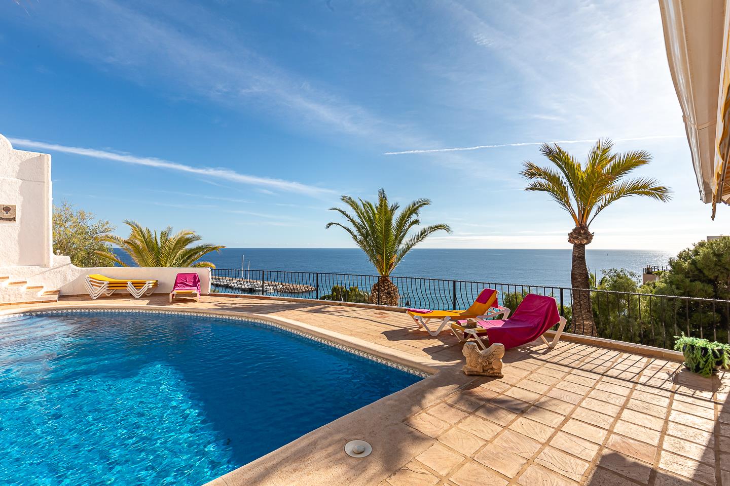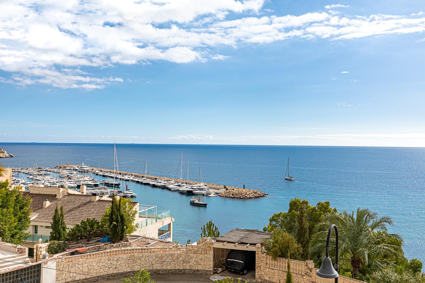 De villa heeft 3 slaapkamers, 2 badkamers en 1 gasten toilet, verspreid over 2 niveaus. De accommodatie biedt privacy, een tuin met bomen, een prachtig zwembad, geweldige uitzichten op de baai en de zee, en een mooi uitzicht op de haven. Het comfort en de nabijheid van het strand, winkelgelegenheden, sportactiviteiten en het nachtleven maken dit een fijne villa om uw vakantie in Spanje door te brengen met familie of vrienden.