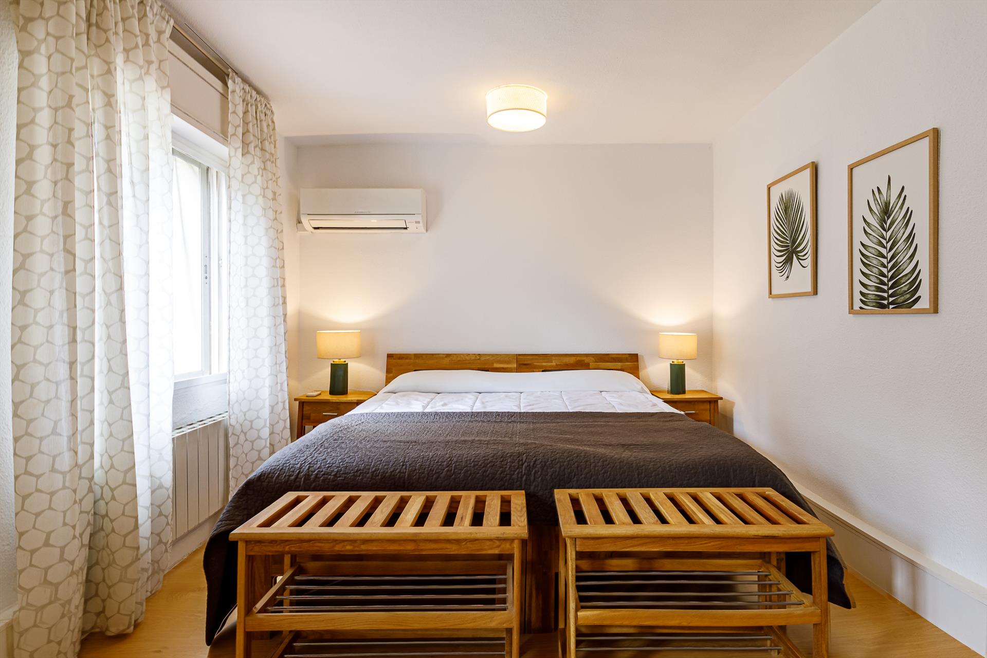 - slaapkamer met airconditioning, tweepersoonsbed en badkamer en-suite