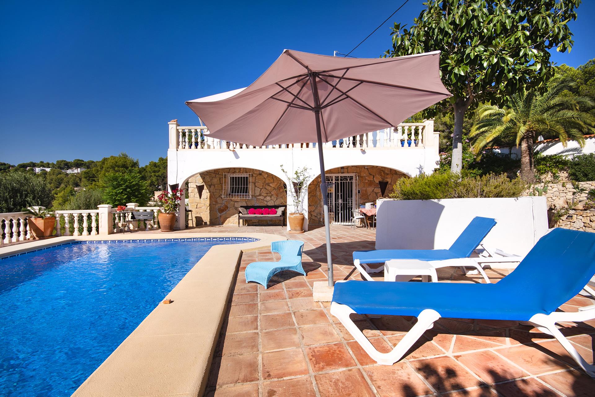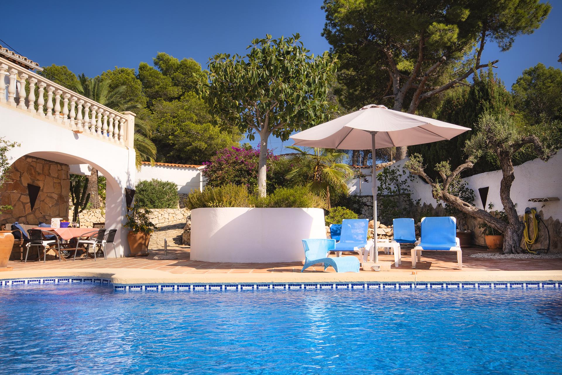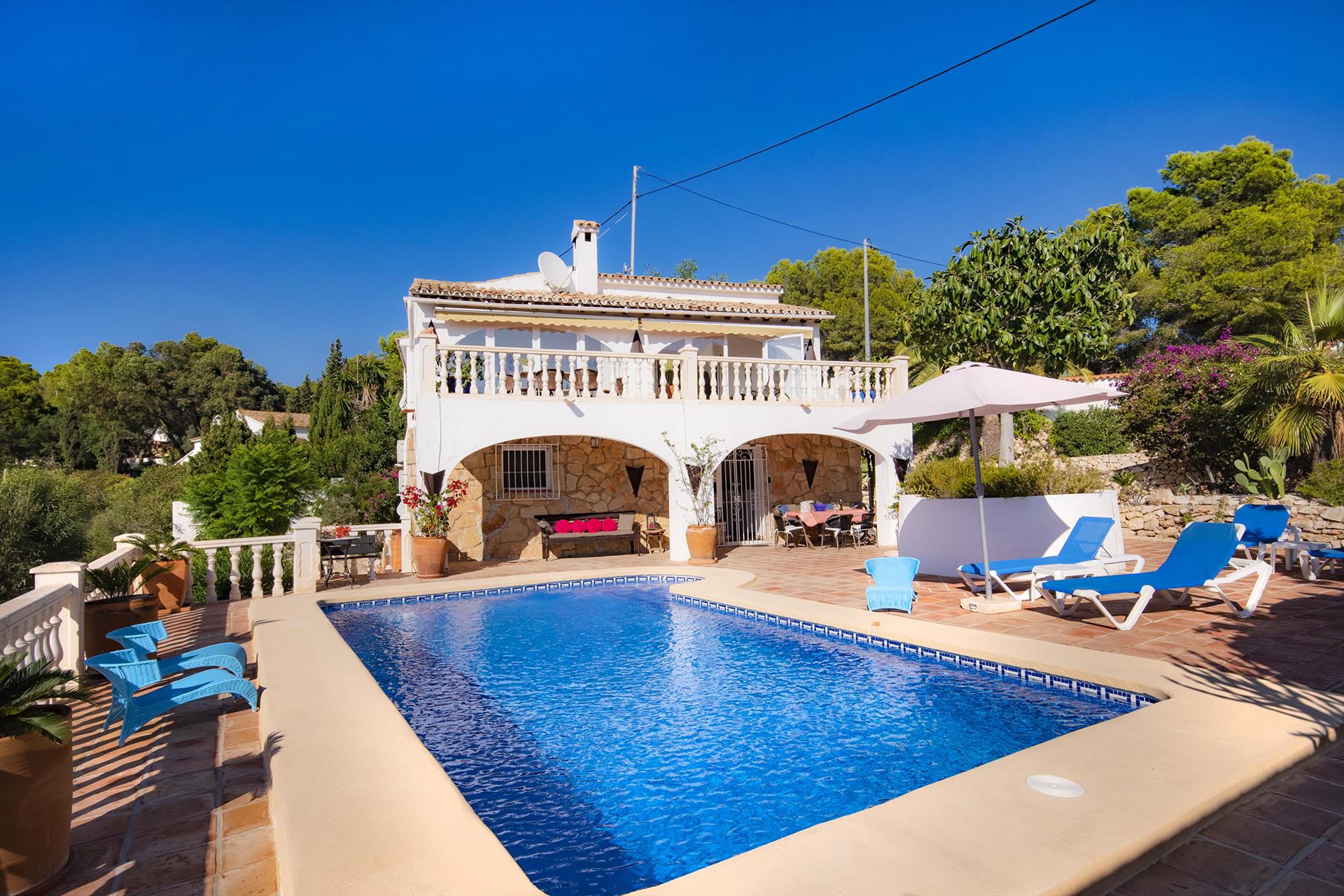 Geweldige en comfortabele villa met privézwembad in Benissa, Costa Blanca, Spanje voor 4 personen. Het huis is gelegen in een bosrijke en woonachtige strandgebied, 50 m van het La Llobella-strand, 5 km van Moraira en 0,05 km van de Middellandse Zee.
