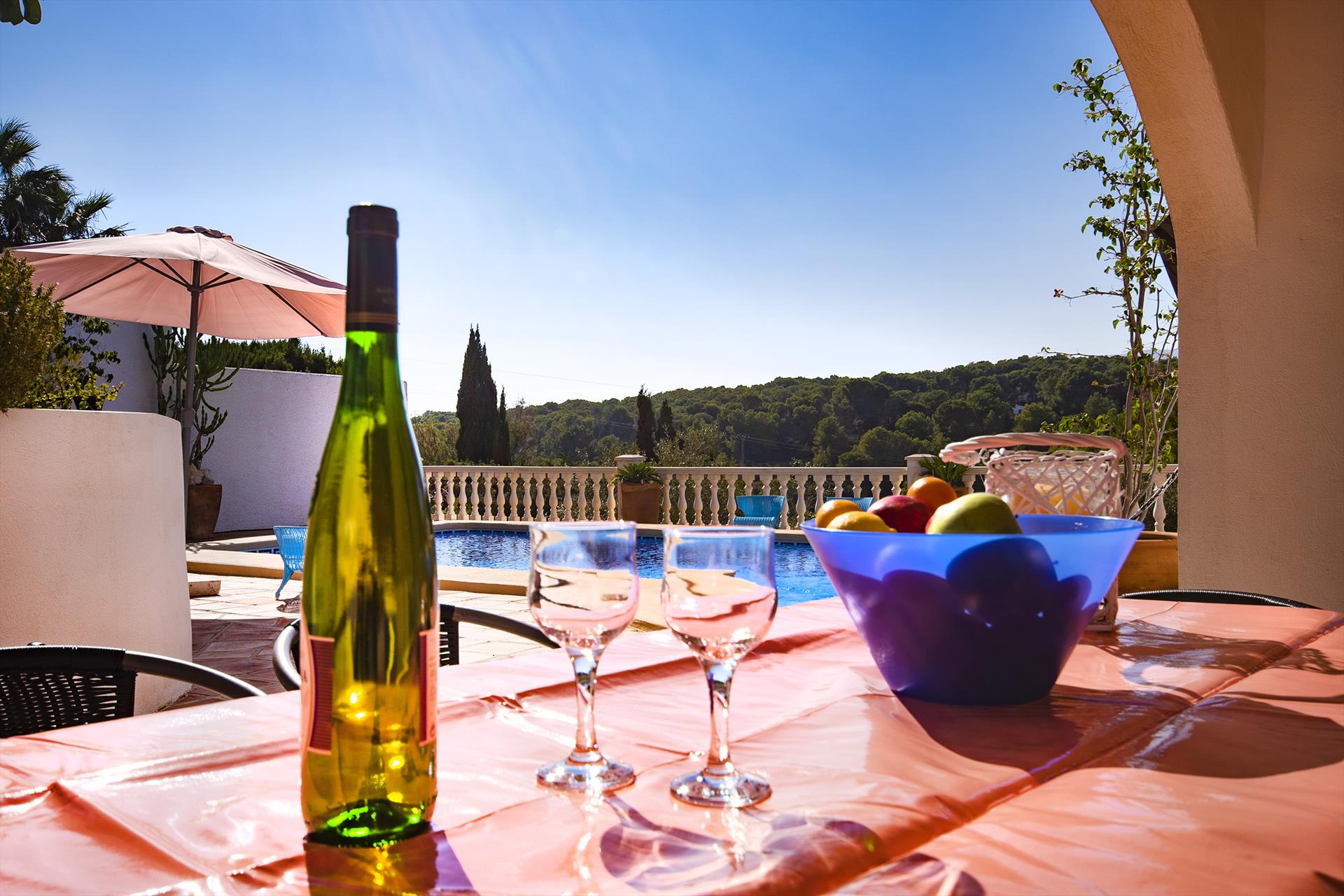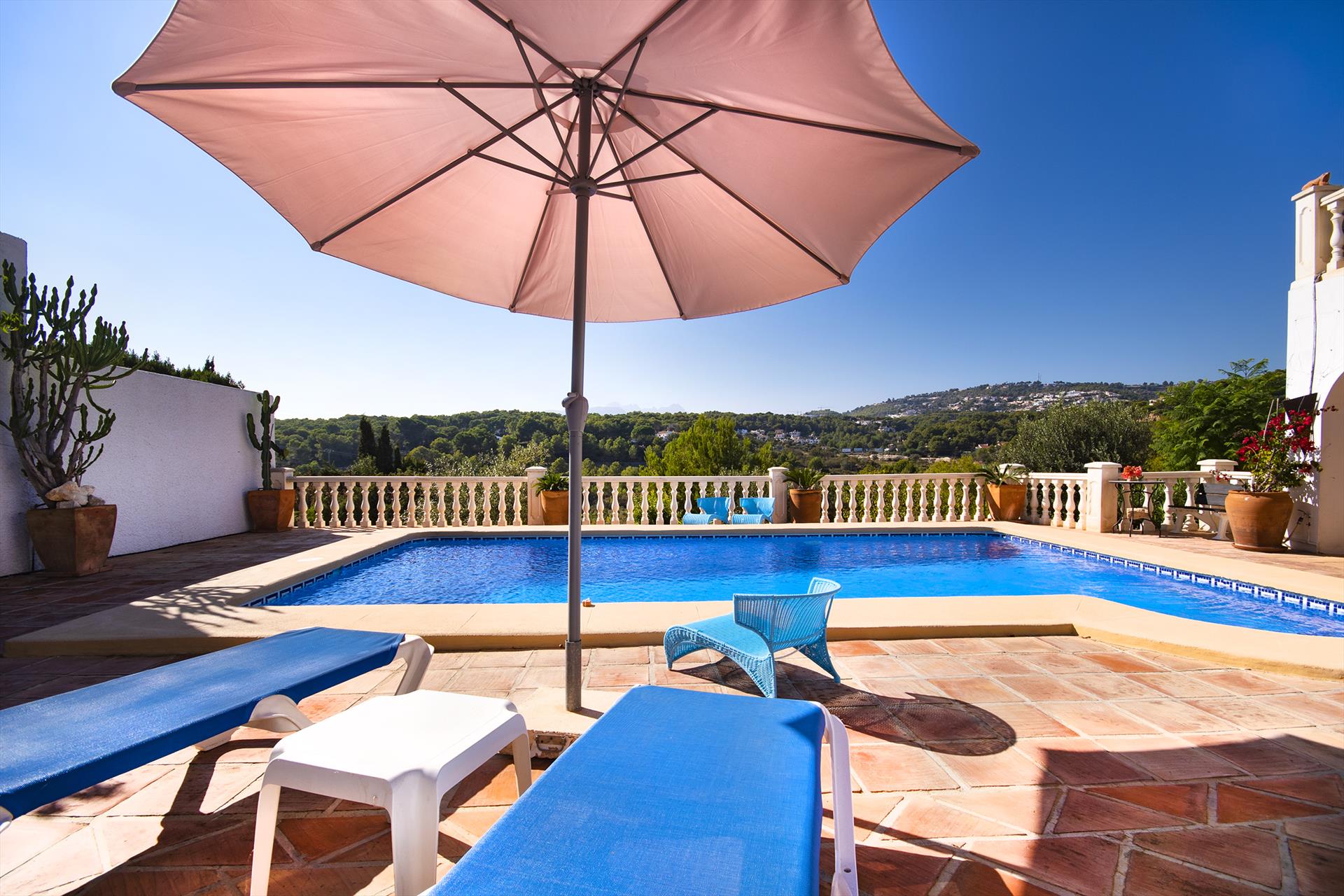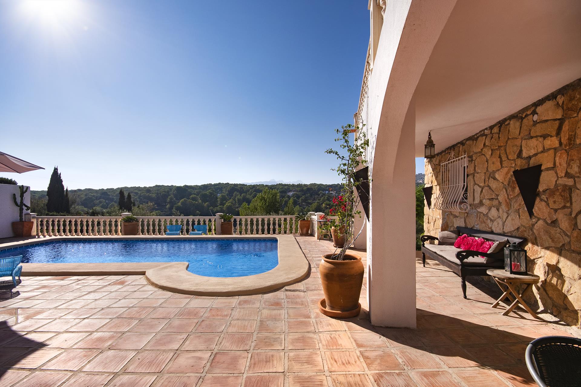 Geweldige en comfortabele villa met privézwembad in Benissa, Costa Blanca, Spanje voor 4 personen. Het huis is gelegen in een bosrijke en woonachtige strandgebied, 50 m van het La Llobella-strand, 5 km van Moraira en 0,05 km van de Middellandse Zee.