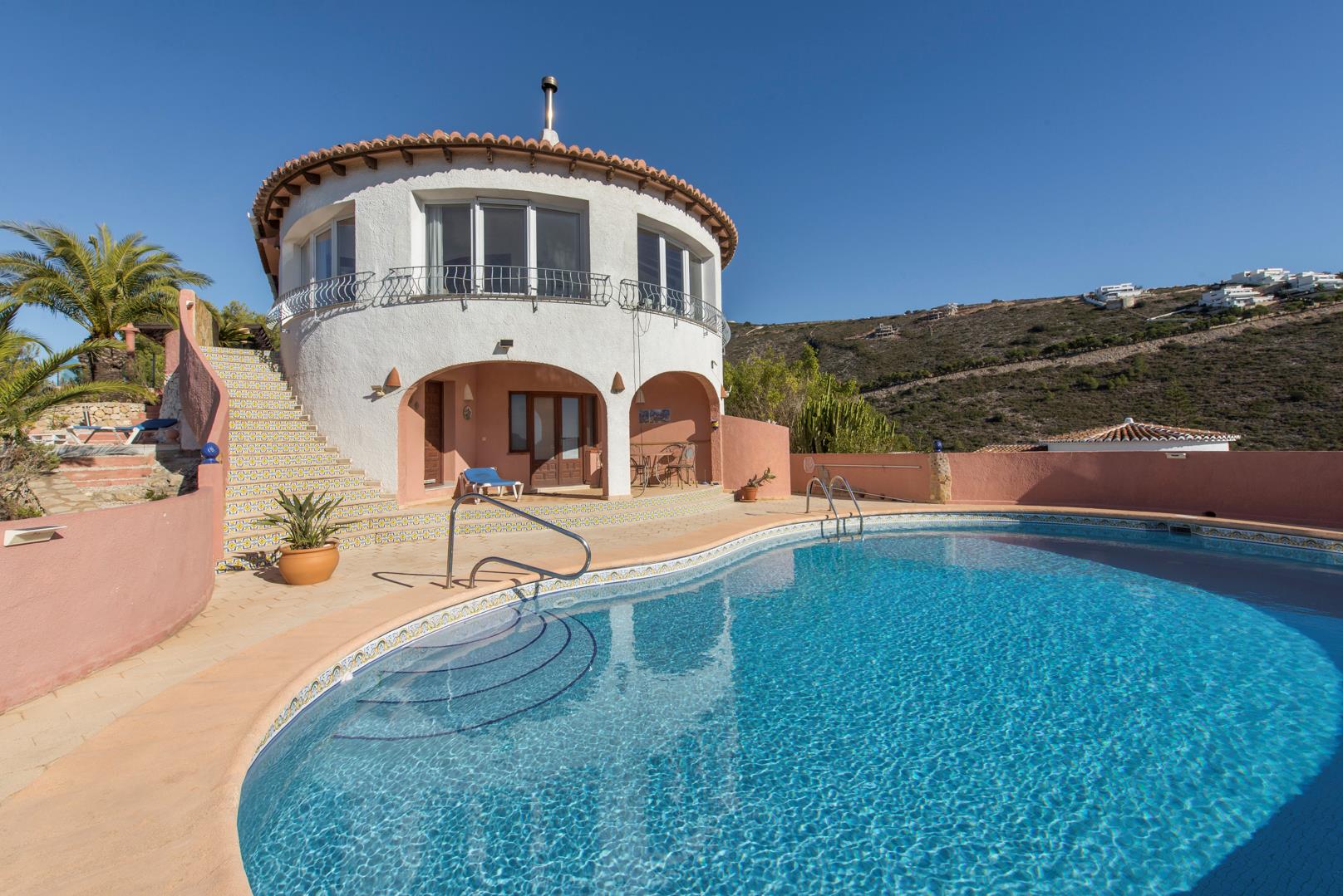 Geweldige en comfortabele villa met privézwembad in Benitachell, Costa Blanca, Spanje voor 6 personen. Het huis is gelegen in een heuvelachtig en residentieel strandgebied en ligt op 10 km van Moraira.