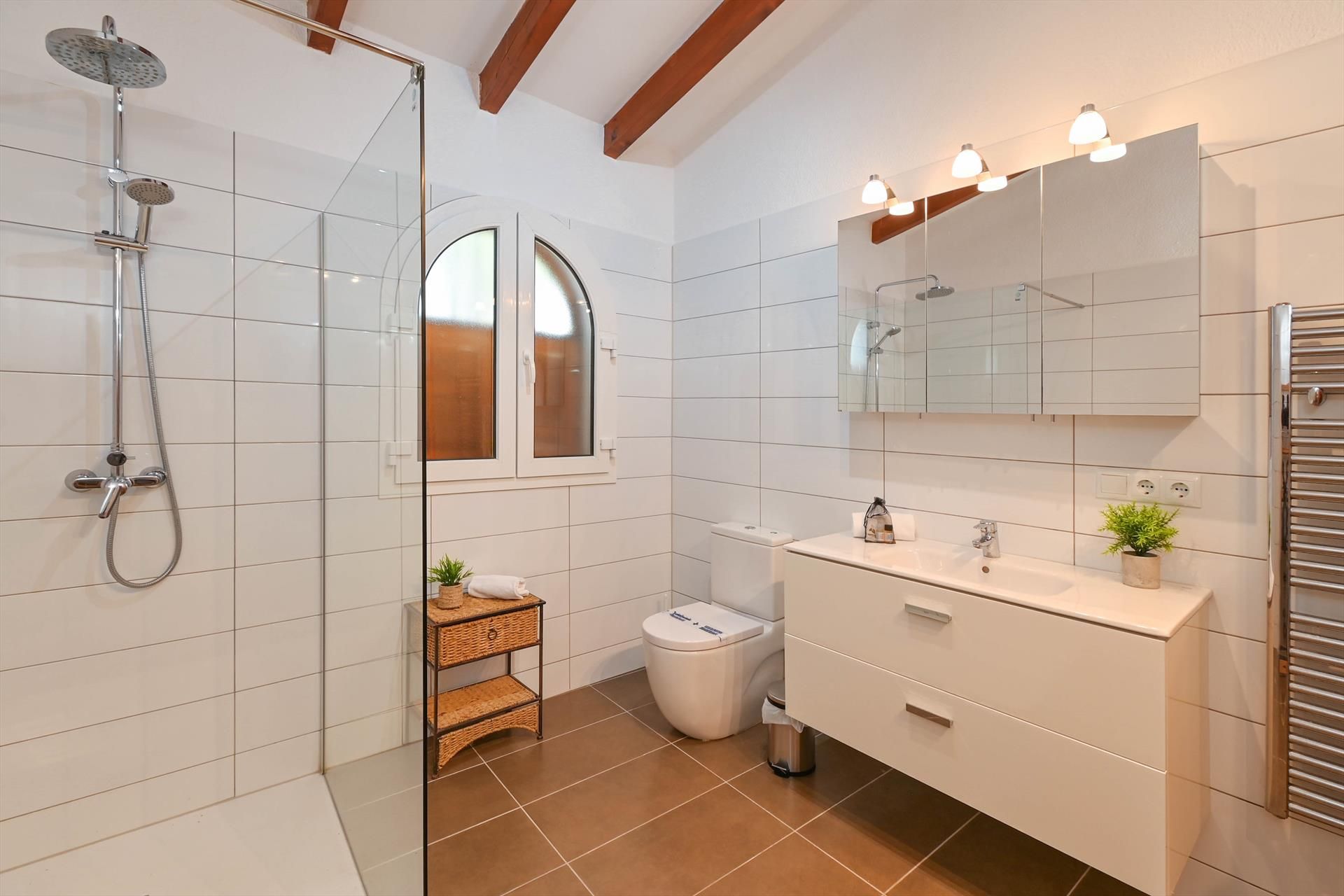 • En-suite badkamer met enkele wastafel, douche en toilet