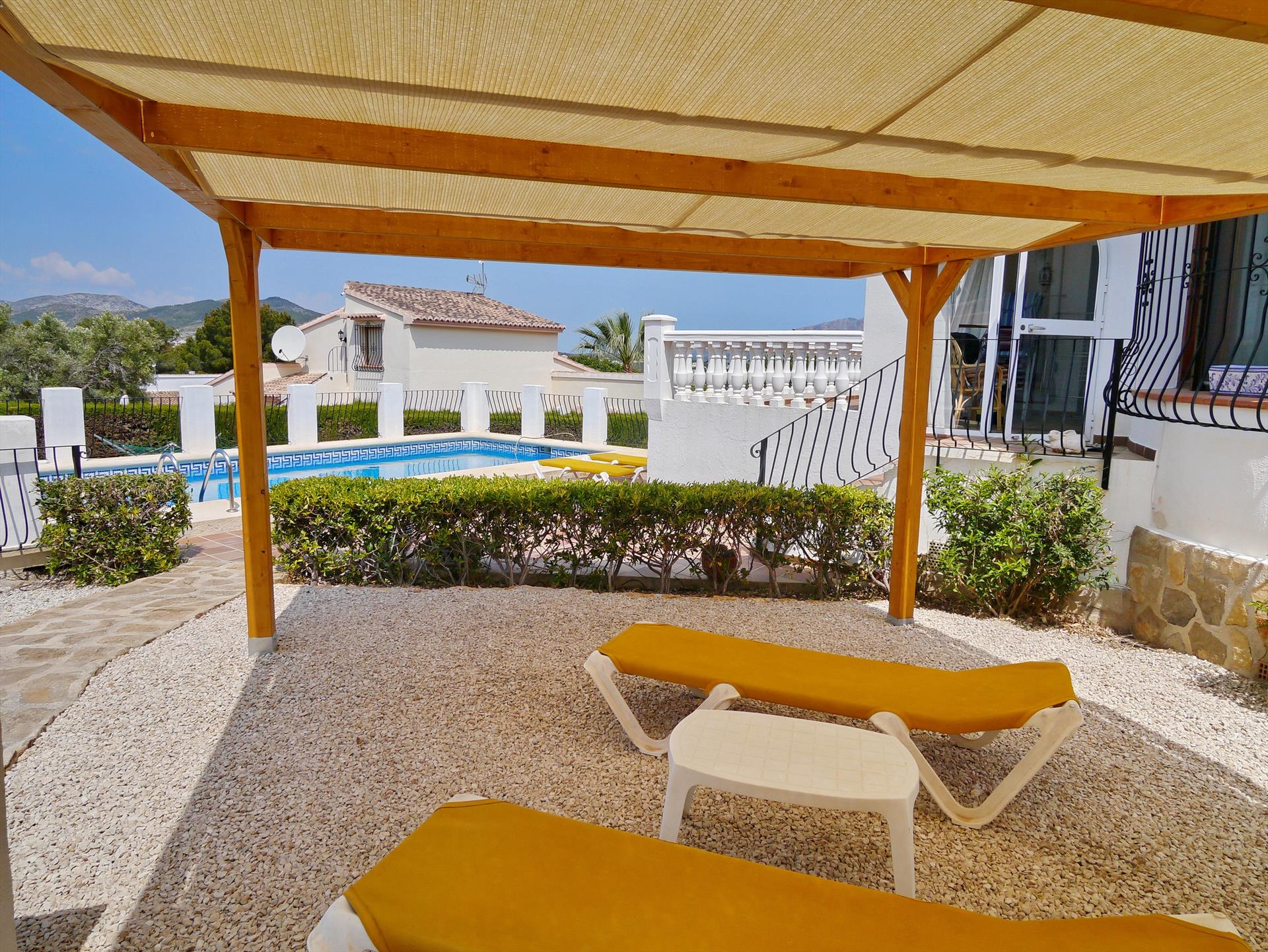 Het huis beschikt over 2 slaapkamers en 2 badkamers. De accommodatie biedt een tuin met grind en bomen, een prachtig zwembad en een uitzicht op de vallei en de bergen. Het comfort en de nabijheid van winkels, sportactiviteiten en uitgaansgelegenheden maken dit een fijne villa om uw vakantie in Spanje door te brengen met familie of vrienden.