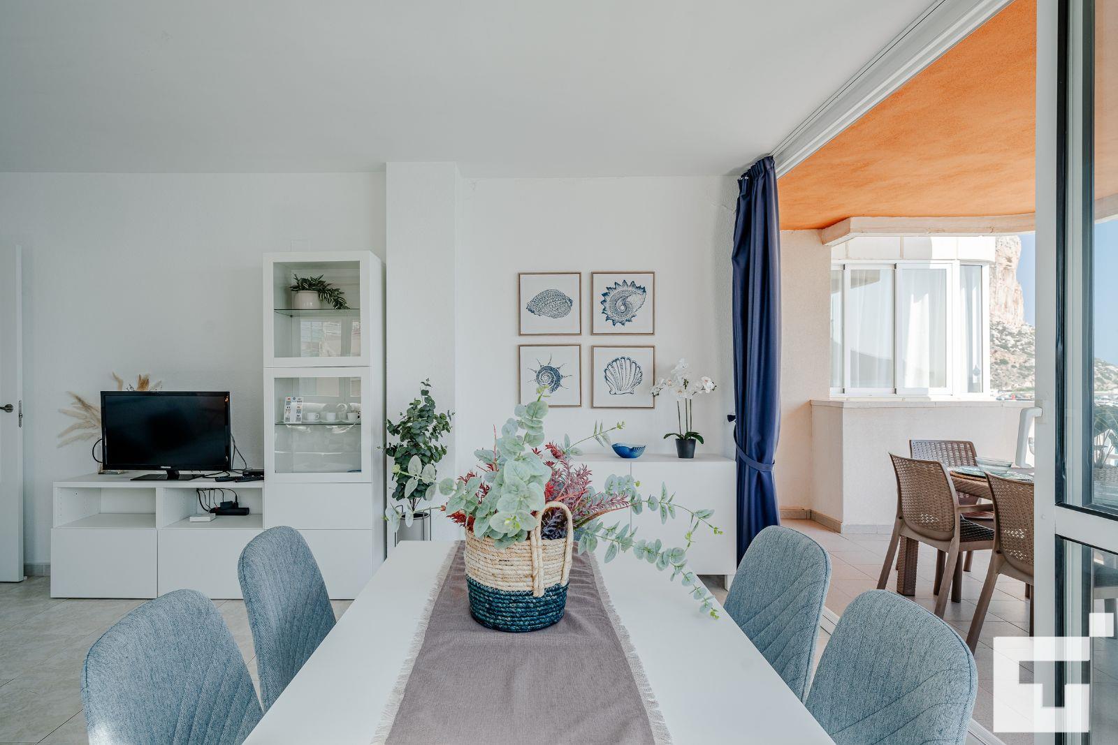 Appartement met gemeenschappelijk zwembad in Calpe, Costa Blanca, Spanje voor 7 personen. Het appartement is gelegen dicht bij restaurants en bars, winkels, supermarkten en een tennisbaan en ligt op 25 m van het strand Playa Cantal Roig.
