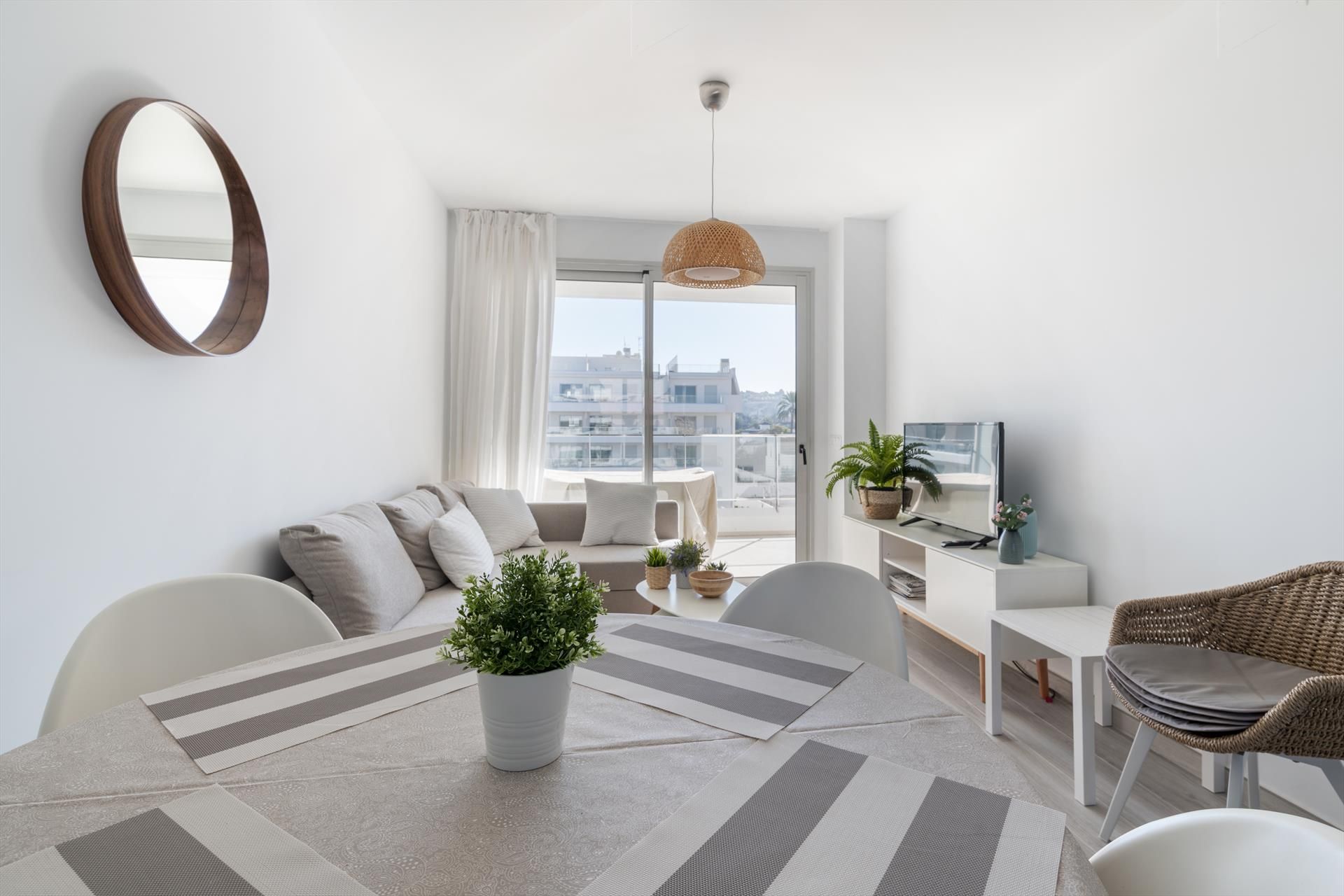 Modern en comfortabel appartement met gemeenschappelijk zwembad in Denia, Costa Blanca, Spanje voor 4 personen. Het appartement is gelegen in een stedelijk strandgebied en bevindt zich op 1 km van het Marineta Casiana strand.