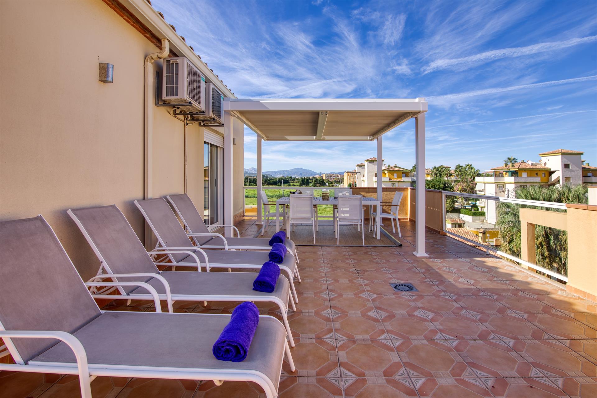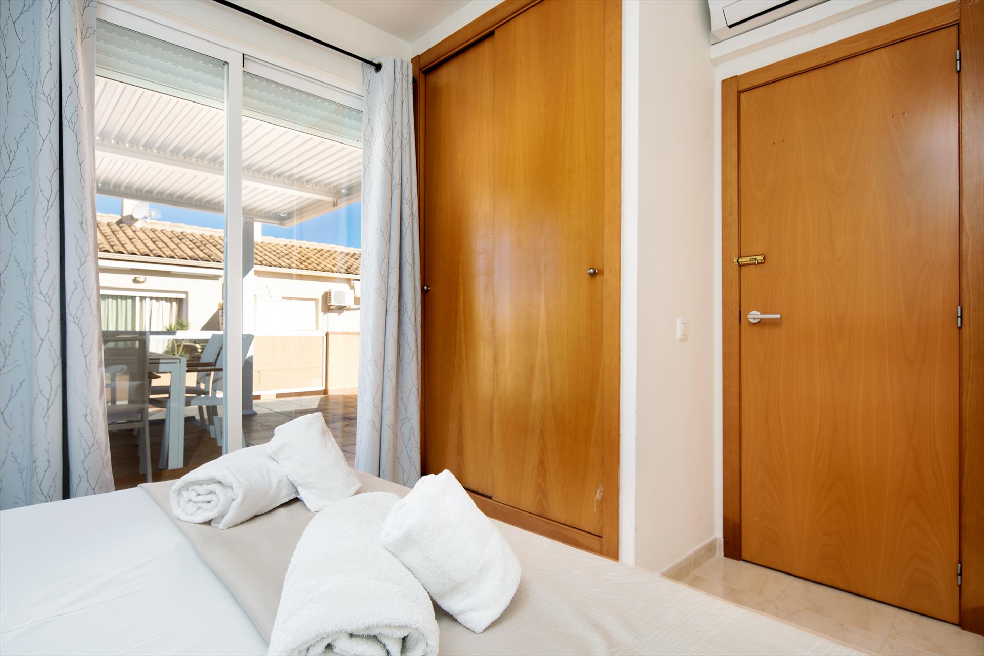 Mooie en vrolijke penthouse in Denia, Costa Blanca, Spanje met een gemeenschappelijk zwembad voor 6 personen. Het huis is gelegen in een residentieel strandgebied, dicht bij restaurants, bars en supermarkten, en bevindt zich op 500 m van het Les Bovetes strand.