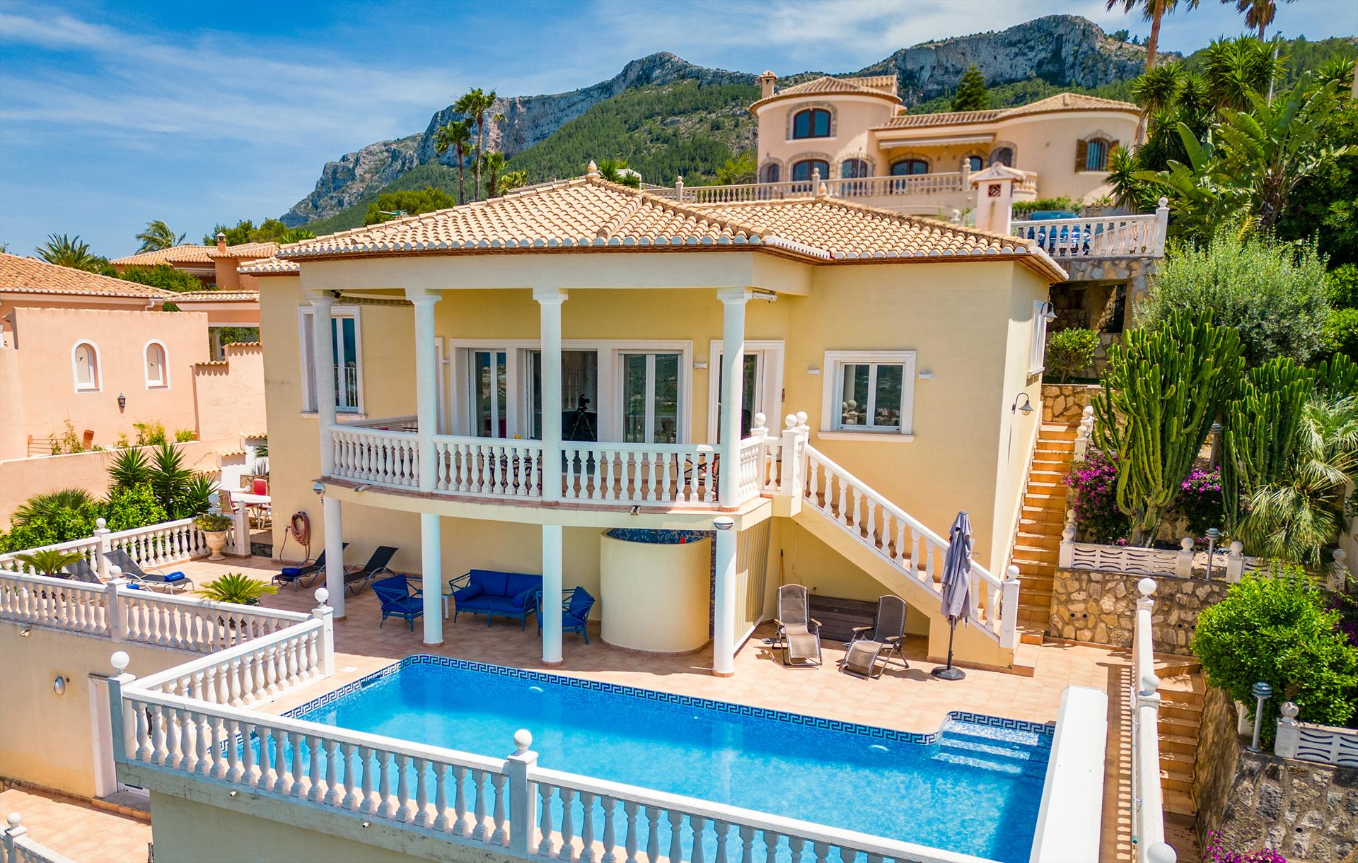 Comfortabele villa in Denia, Costa Blanca, Spanje met verwarmd zwembad voor 6 personen. Het huis is gelegen in een heuvelachtige woonwijk en ligt op 3 km van het strand van Las Marinas.