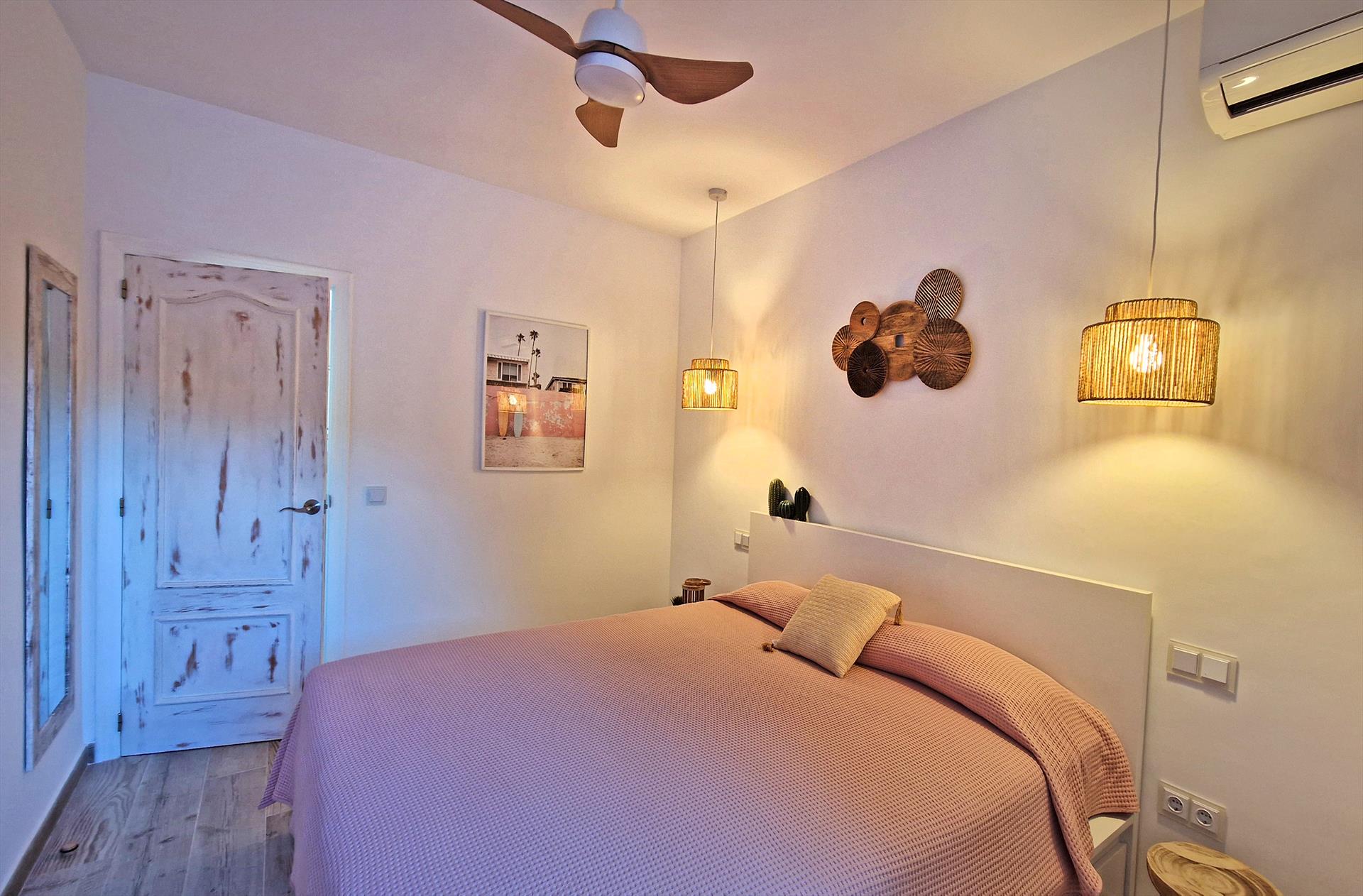 • slaapkamer met airconditioning, tweepersoonsbed en en-suite badkamer