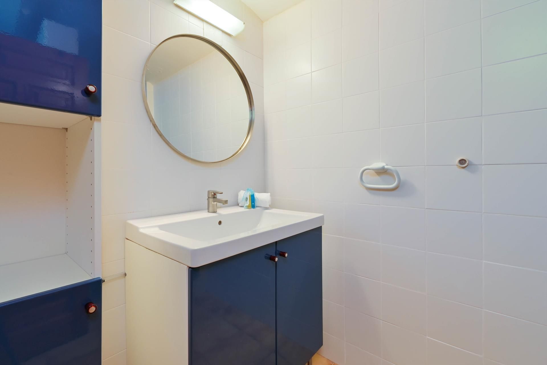 • badkamer met wastafel, douche/badcombinatie en toilet