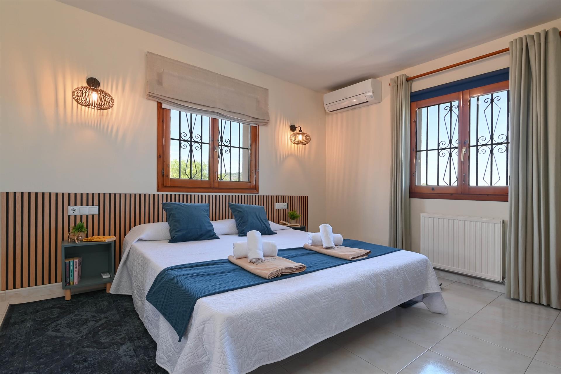 • 2 slaapkamers, elk met 2 eenpersoonsbedden en air conditioning
