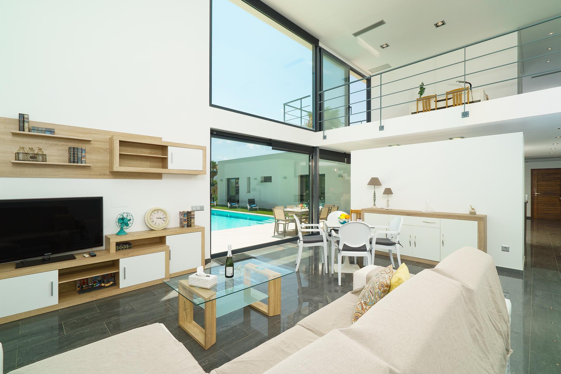 De villa heeft 2 slaapkamers, 2 badkamers, en 1 gastentoilet, verspreid over 2 verdiepingen. De accommodatie biedt privacy, een prachtige tuin met gras en bomen, en een mooi zwembad. Het comfort en de nabijheid van het strand, winkels, sportactiviteiten, uitgaansmogelijkheden, bezienswaardigheden en cultuur maken deze villa ideaal om uw vakantie in Spanje met familie of vrienden en zelfs uw huisdieren door te brengen.