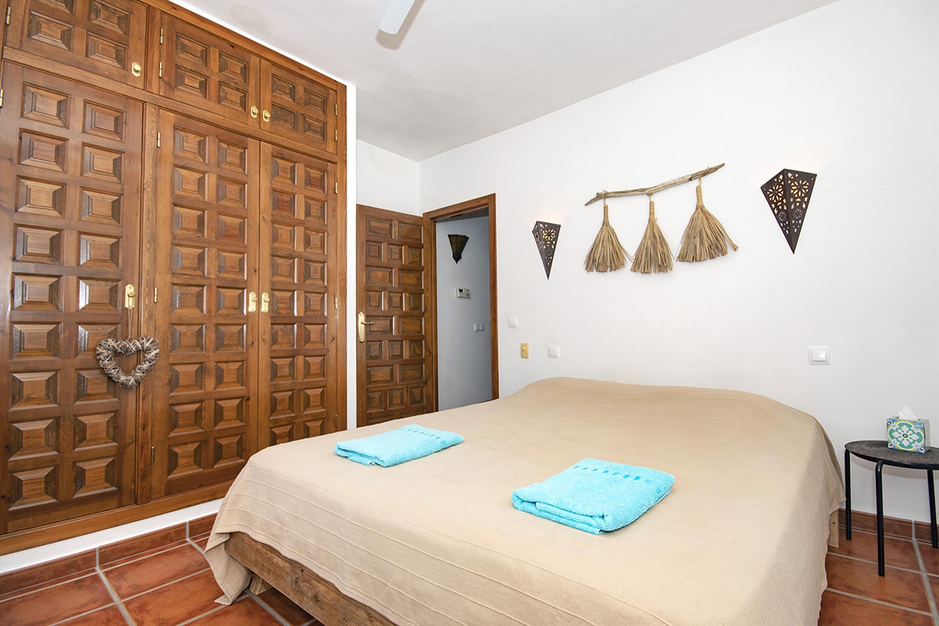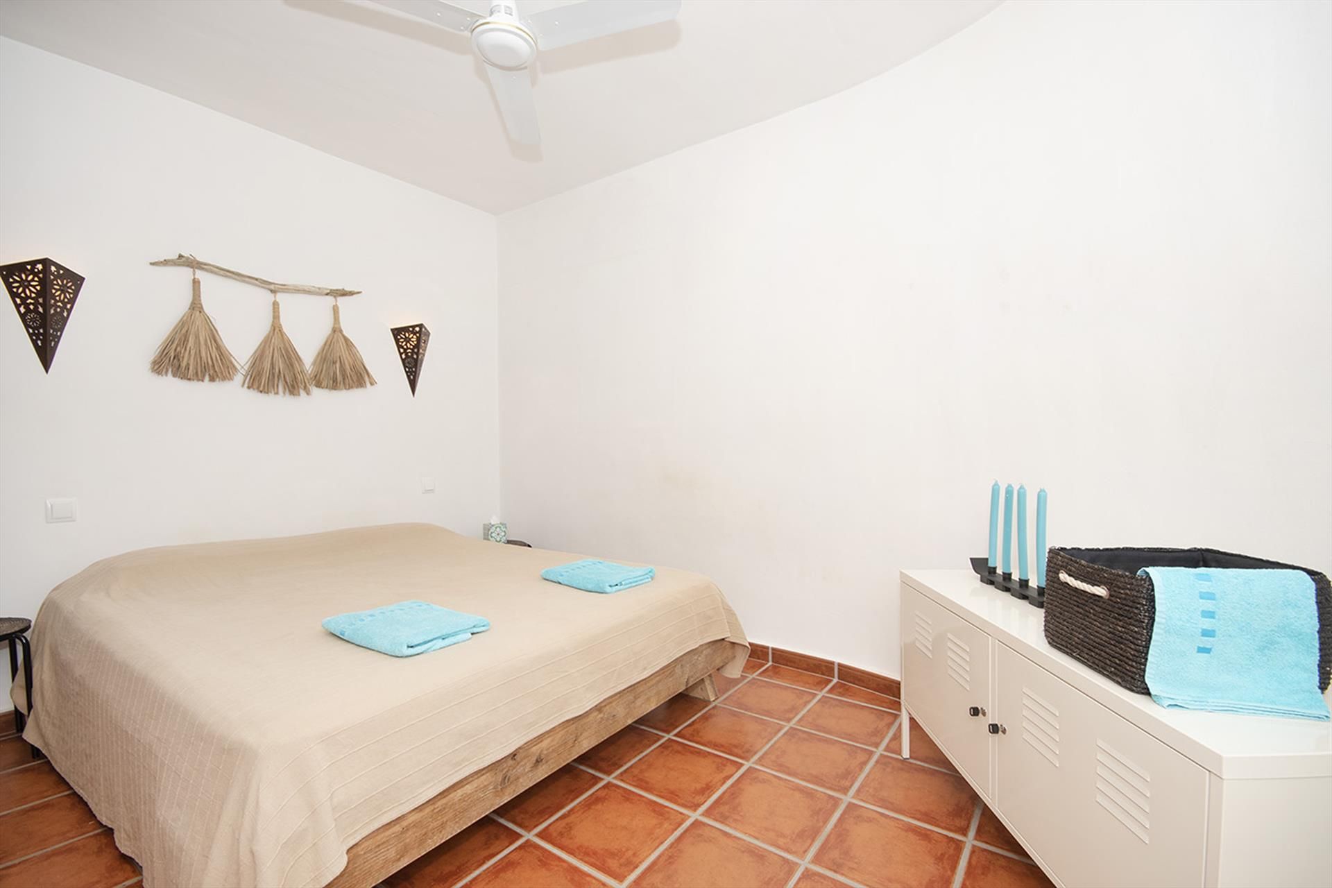 • slaapkamer met airconditioning, tweepersoonsbed en ventilator