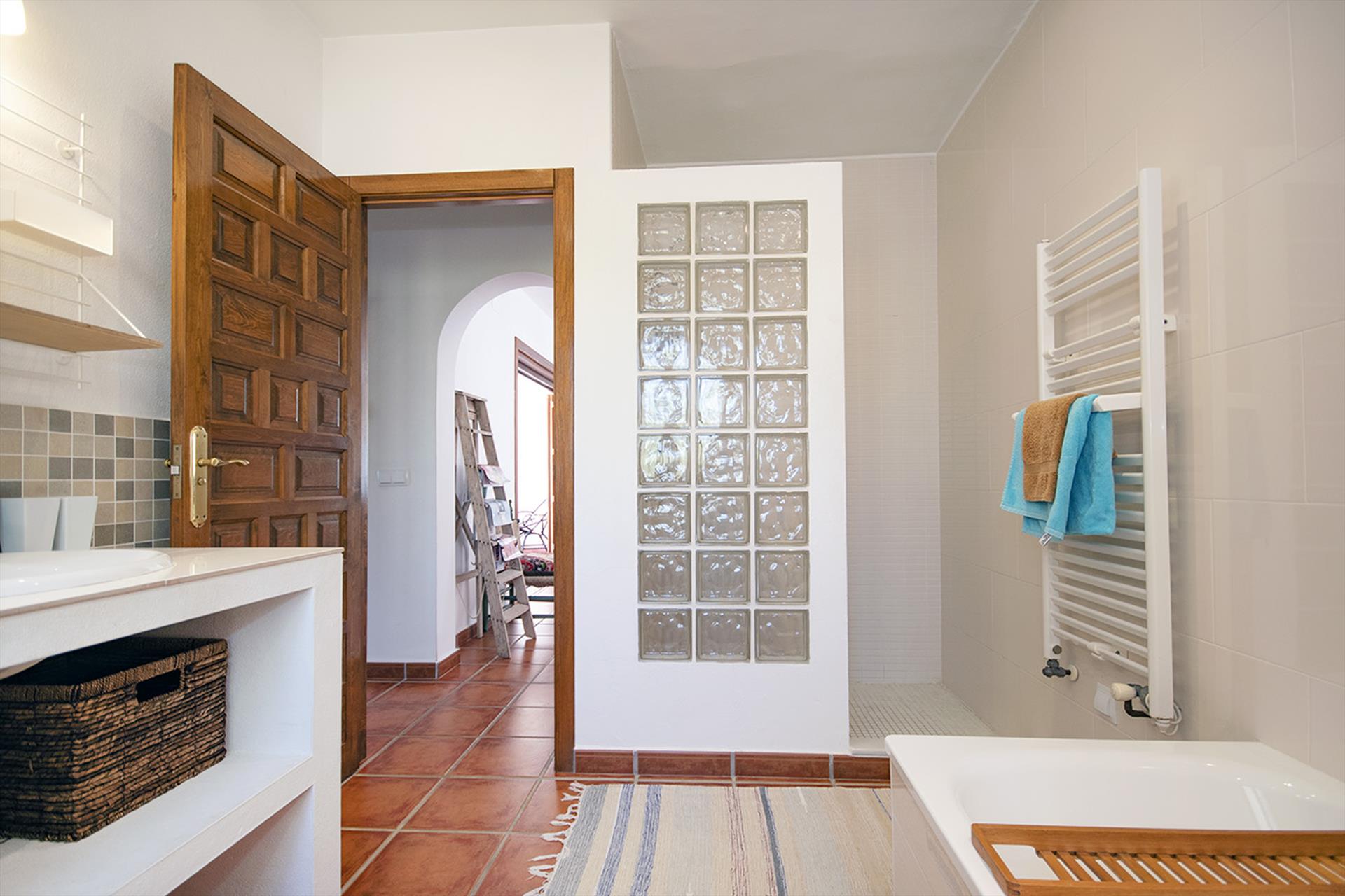 • badkamer met bad, douche en toilet