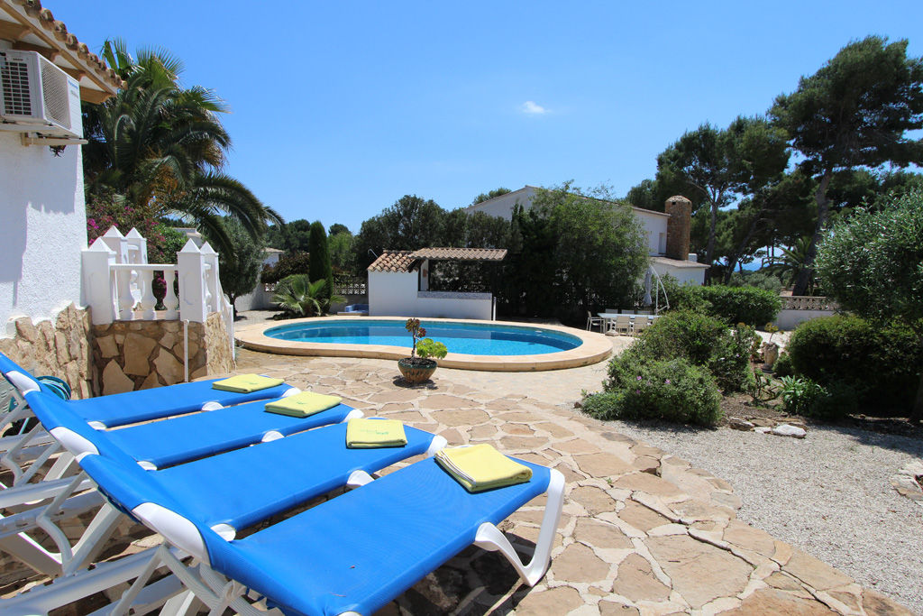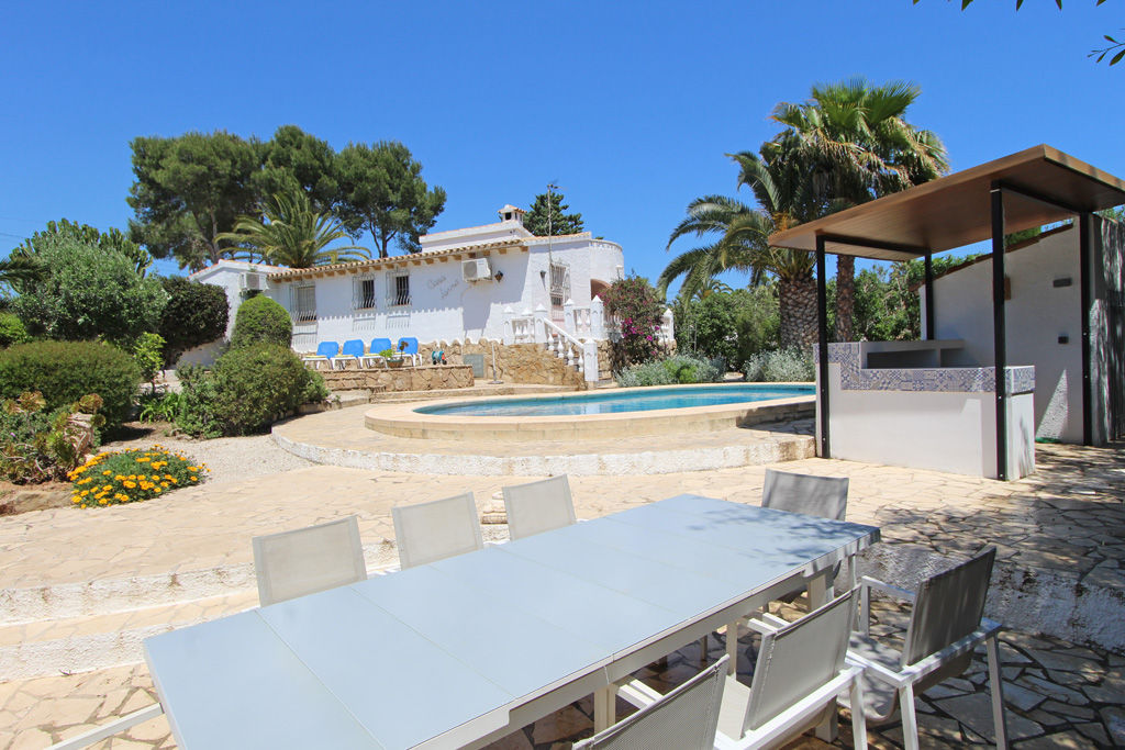 Geweldige en comfortabele villa in Moraira, Costa Blanca, Spanje met privézwembad voor 4 personen. Het huis is gelegen in een woonwijk en ligt op 3 km van het Ampolla-strand.