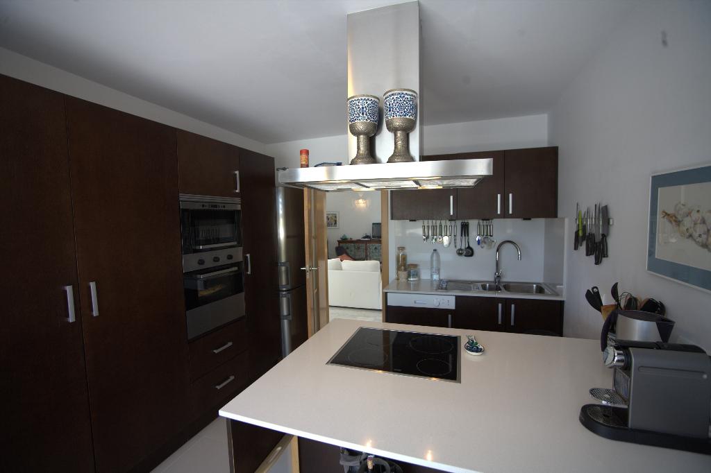 • keuken met elektrische kookplaat, elektrische oven, magnetron, vaatwasser, koelkast-vriescombinatie, koffiezetapparaat, waterkoker en broodrooster